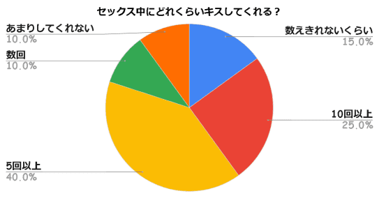 彼氏がいる18歳~30歳までの女性300人に、セックス中何回くらいキスをしてくれるのかネット上でアンケートを取ってみました。