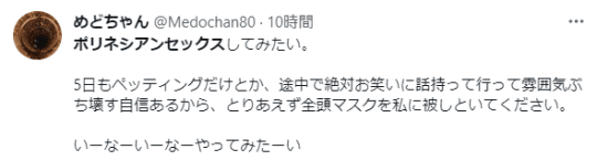 ポリネシアの人、パワーあります。パワーもさることながら、じっくりと愛を確かめながらするので感じ方も格別だそう。