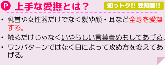 女性が喜ぶところを触れてじっくりと愛撫していくこと。