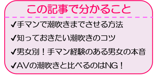 まとめると、潮吹きだけが目的の手マンは絶対ダメです。