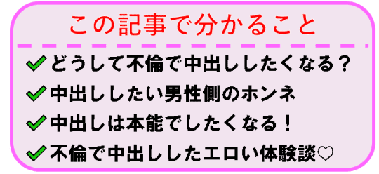 今回は、不倫男女の中出ししたい・中出ししてもらいたいという心理を