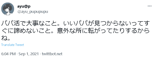 「自分の今の世界」があって、そこにプラスの要素で「シュガーダディ」がいるということを忘れずに。
