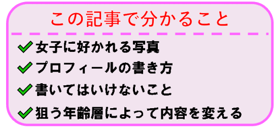 なぜなら、若い女性に対してあまりダラダラと長文のプロフィールを記載しても、ルックス重視の彼女たちは読む気を失ってしまうからです。