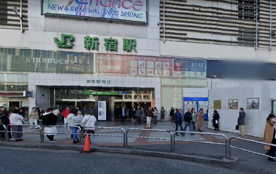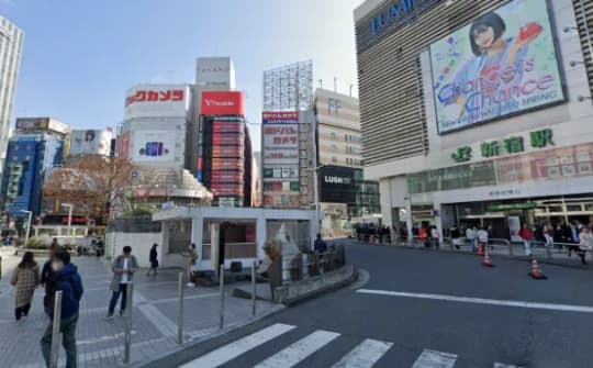アメリカンクリスタルは、JR新宿より徒歩6分ほどの距離にあります。JR新宿駅東口から降り、ALTA方面へ向かいます。