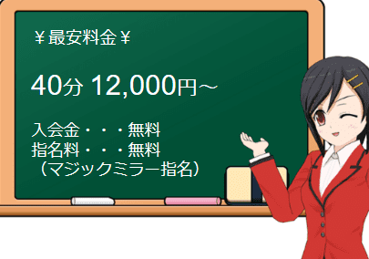 40分12,000円~と標準的な料金です。マジックミラーで自分の目で女の子が選べるところは大きいですね。