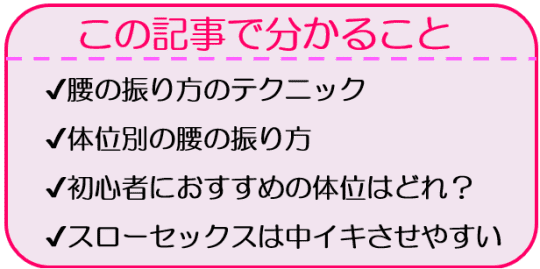 セックスにおいて、女性が喜ぶ腰の振り方について紹介してきました。