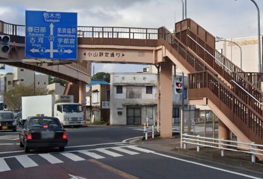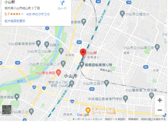 車での行き方を小山駅から説明します。駅の西口に出たら、正面の広い道(祇園城通り)を直進します。