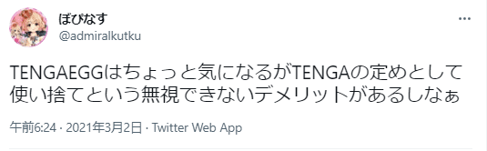 卵のような形をしており、サイズが本当に小さいのが特徴的なTENGAです。