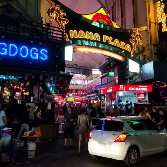 スクンビット・ソイ4にあるナナプラザ(NANA PLAZA)は、バンコク3大ゴーゴーバーエリアの一つです。3階まである屋内に20軒ものゴーゴーバーがひしめく様は、バンコクのみならず世界でも最大級のセックスハブと評されています。