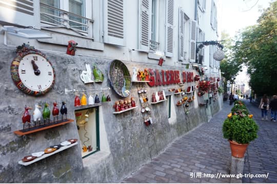 ピカソやユトリロも愛したモンマルトル地区は今もなおパリ中の芸術家が集まる地区です。 そんなモンマルトル地区には、ここでしか感じることができない独特の雰囲気があるんです。 街の中には、ハーブを演奏する人やギターを演奏する人がいたり、絵描きが集まる広場があったり、建物自体がアートになっていたりと、街全体が芸術に包まれている感じ。
