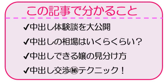 今回は、「デリヘル嬢へ中出しの相場・マル秘テクニック」についてまとめました。デリヘルのワンランクアップした楽しみ方を知りたい方は必見ですよ。