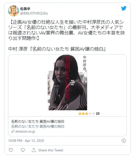 ※AV女優の貧困問題を描いた本「名前のない女たち 貧困AV嬢の独白」はAV女優の問題をリアルに描いていて参考になります。