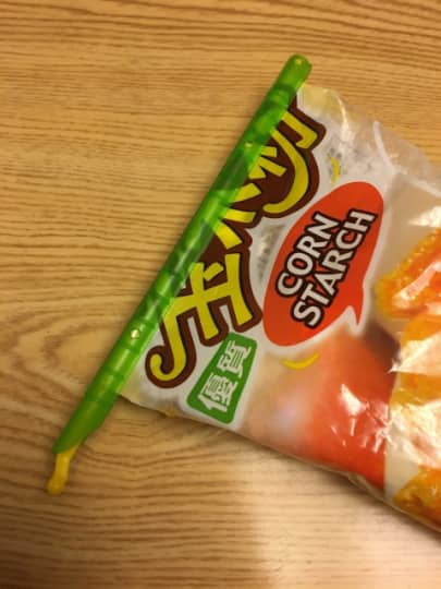 写真のように、食品の袋を閉じる用途で使うのですが、従来のクリップよりも密封度が高い! おばさんの実演販売で見せてくれたのですが、水を入れたビニール袋をこれで閉じて本当に溢れなかったので、 思わず買ってしまいました! 便利で気に入ったので、その後何度か追加で購入して愛用しています。 ここ数年ですっかり台湾の家庭でメジャーなものになり、士林夜市では今でも数カ所で売られています。 日本でもネットで購入できるようですが、士林夜市では一本20元(約70円)と格安! 一風変わったお土産にいかがでしょうか?