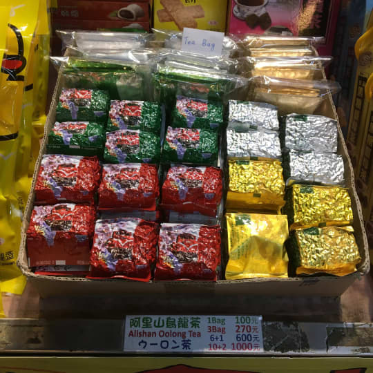 台湾のおいしいお茶、阿里山烏龍茶のお茶っ葉も購入できます! 台湾茶、おいしいですよね〜。 真空パックになっているので、トランクの中も安心。 これも定番のお土産ですね!