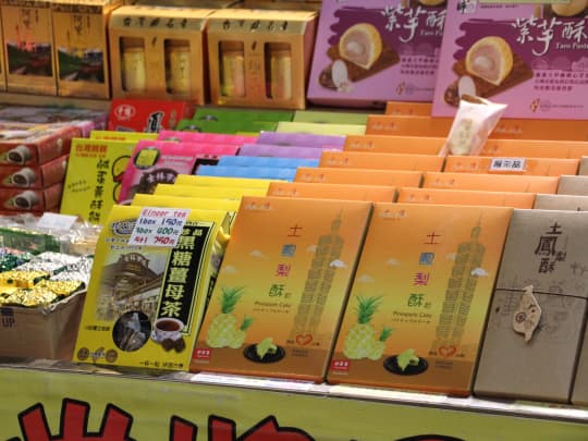 定番のパイナップルケーキだけではなく、タロイモケーキ(写真右上の紫のパッケージ)や、生姜ドリンクのもと(写真左下の黄色いパッケージ)などなど。