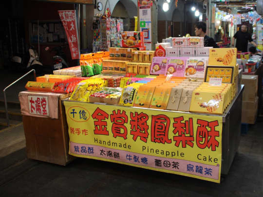 台湾の街中にはいくつも老舗の有名店のパイナップルケーキがありますが、士林夜市ではわりとお手頃価格のバラマキ用が手に入ります! 試食させてくれる所も多いです。