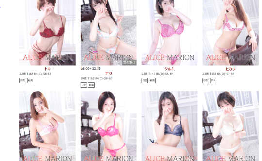 東京 ヘルス 目黒 アリスマリオンに在籍している女性たち、だいたい50名くらいだと思います。