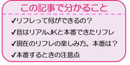 リフレってどんな場所?やれることは?本番は可能?