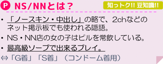 高級店であれば、未経験者は必ず講習を受けるため、マ●トでも遊べます。即尺・即即・NS・NNなど、濃厚サービスが可能な女の子も比較的多いです。