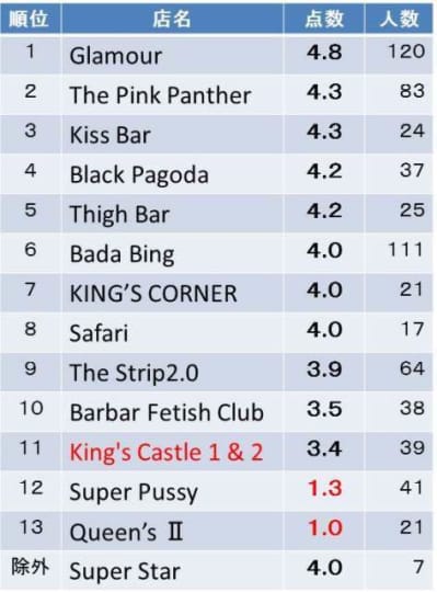 そのようなサイトの影響もあってか、【King’s Castle】に多くの日本人が訪れたようですが、グーグル評価点数のランキング表をもう一度見てください。回避すべきぼったくりバー2店に次いで、評価が低いですよね?