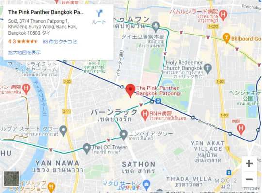 パッポン2とスラウォン通り(Surawong Rd)の角にありますから、バンコクに不慣れな旅行者でも見つけやすいです。