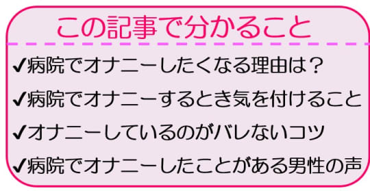 病院の中、しかも周りに人がいる状態でのオナニーは、背徳感が半端なく、抑制されている空間だけに燃えると思っている人も多いようです。