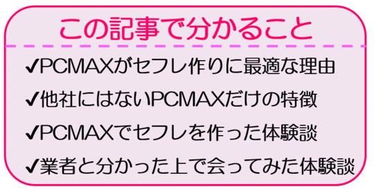 そこで今回は、PCMAXの特徴と、体験談を紹介していきます。