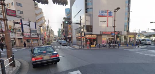 亀有駅を後ろに右方向へ進みます。交差点を右に曲がり