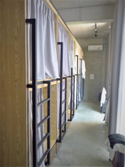 ドミトリーと言ってもとても綺麗で清潔です。ベッドには他の宿泊者から見られないようにカーテンがあり、日本のカプセルホテルのラグジュアリー版のようなイメージです。