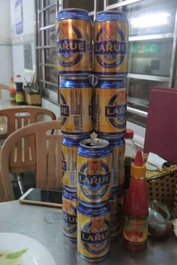 因みにこの時は2人でビール10缶+おかず3品で150,000ドン(750円)前後でした。ベトナム恐るべし・・