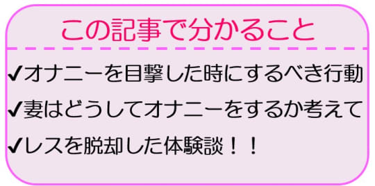 せっかく妻のオナニーという兆候に気づくことができたのですから、あとは行動するのみですね。