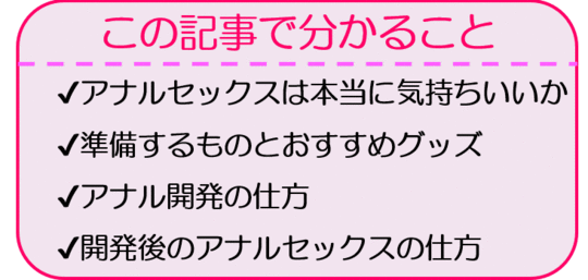 アナルセックスをする時の準備について、詳しく説明してきましたがいかがでしたか?