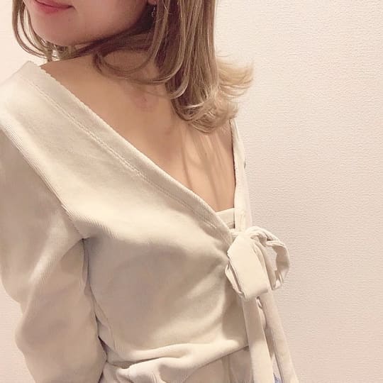 前から見ると普通のトップスなのに、よく見ると…あれっ?!的なサプライズのある、背中が開いた服。