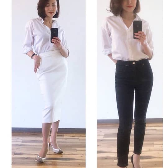 白シャツ・タイトスカート