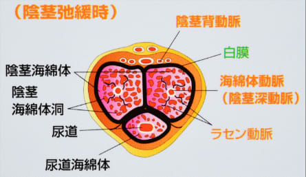 体内では一酸化窒素が放出され血管に血液が流れ込み、血液の圧力によって海綿体が硬くなります。