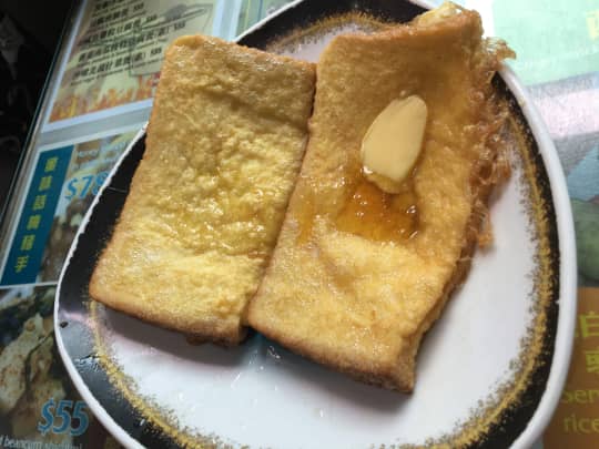このシンプル具合がたまらない西多士(フレンチトースト)。 20$=280円 香港ではがっつりとしたフルコースを楽しんだので、ときにはこういうシンプルなカフェでホット一息つく時間も大切だなあと:)