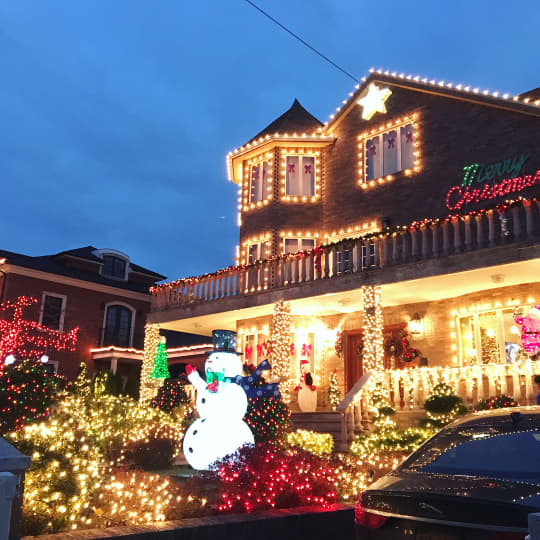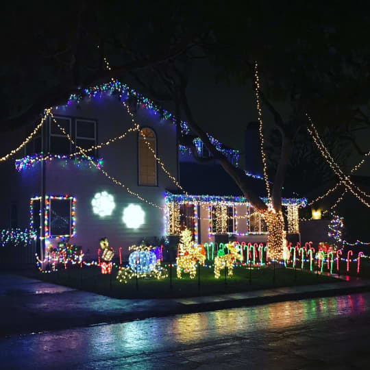 アメリカでは、一般の家庭も結構な数のお家がイルミネーションを飾り付けます。中には、ちょっとやりすぎでは?!という規模の派手派手なお宅もあります。アメリカのお家は大きいですし、敷地も広いので迫力がありますね!