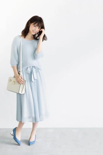 ナチュラルなメイク、膝丈くらいのスカート、落ち着きのあるファッションなど、どれも上品で魅了されます。