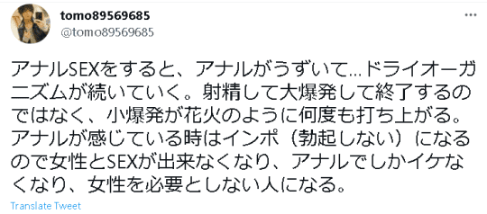 アナルは開発できると何度もメスイキできるほどドライオーガズムが快感なんですが、やり過ぎると、女性とのセックスが物足りなくなる可能性も少しあります。