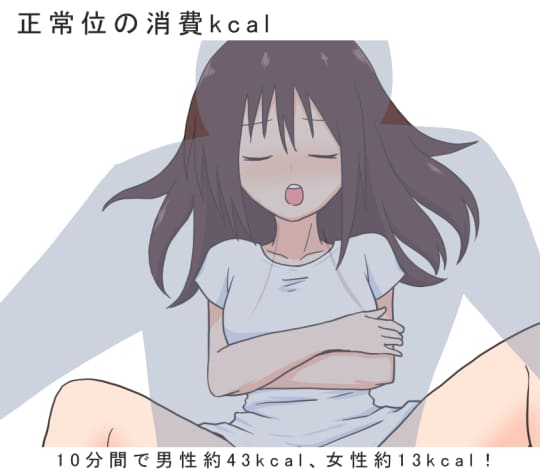 正常位の場合、10分間で女性は13カロリー、男性は43カロリーの消費をすることになります。