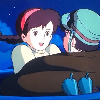 シータとパズーが、初めて出会う幻想的なシーンです。