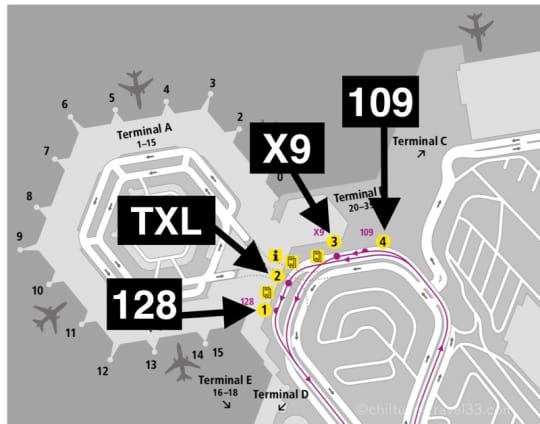 そんなテーゲル国際空港から公共バスを使用してベルリン市内へと向かうアクセス方法ですが「TXL・X9・109・128」の4つのバスが出てます。