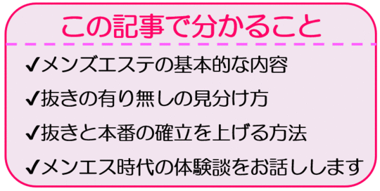 今回は「メンズエステでの″抜き″有り無しはどう見分ける?!」について、解説していきます。