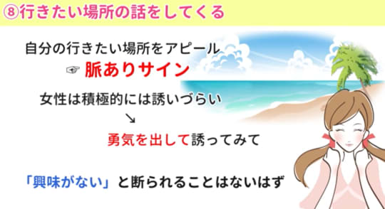 LINEのやり取りの中でさりげなく「○○行ってみたいんだよね~」などの、キーワードが出てくるのはかなり脈ありです。