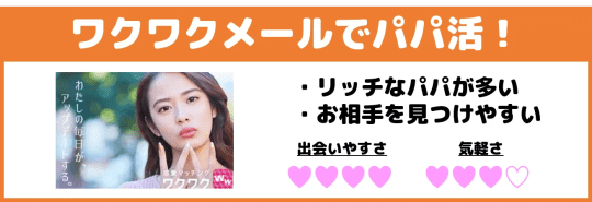 そんな割り切りの出会いをワクワクメールで求める人の特徴は、ズバリ「ママ活」や「パパ活」を希望する方が多いでしょう。