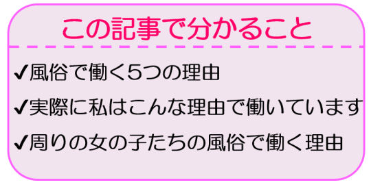 風俗で働く理由はお金だけ?なんでなのか私や周りの理由20選を暴露!