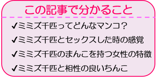 ミミズ千匹とのセックスで、絶頂を味わいやすいちんこのことです。