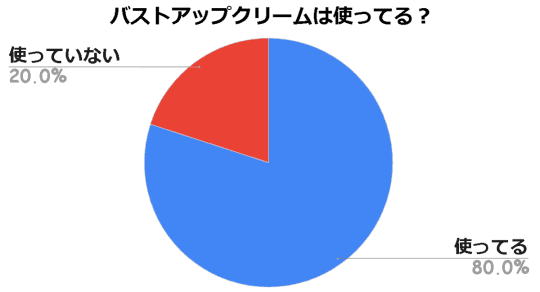 実際にバストが大きくなった人にバストクリームを使っているかどうか、20~30歳の女性200人にアンケートをネット上で取ってみたところ、ほとんどの方が使っているという結果が。