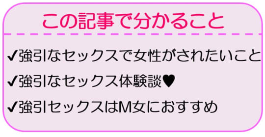 強引なセックスは相手の合意を得て、相手の女性が嫌な思いをしないレベルのセックスのことです。無理矢理はダメです。