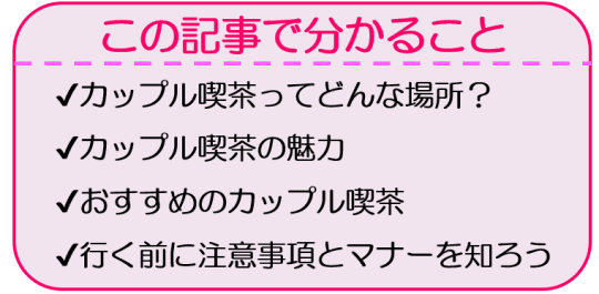 もちろん、完全個室のカップル喫茶もあります。初心者でも気後れしないようにと配慮された部屋を用意している店舗もあるということ。
